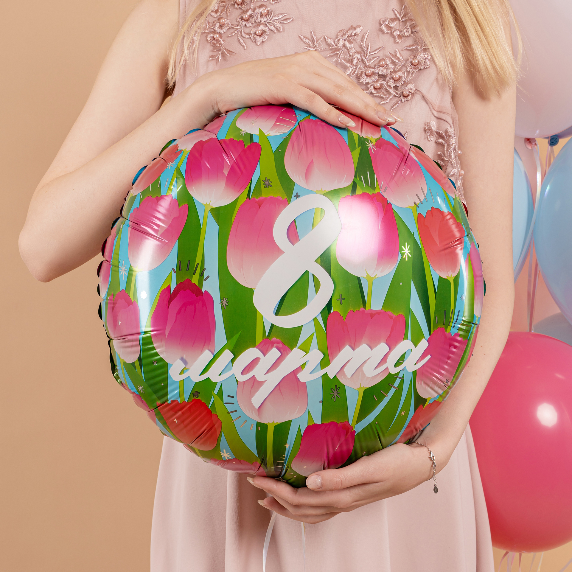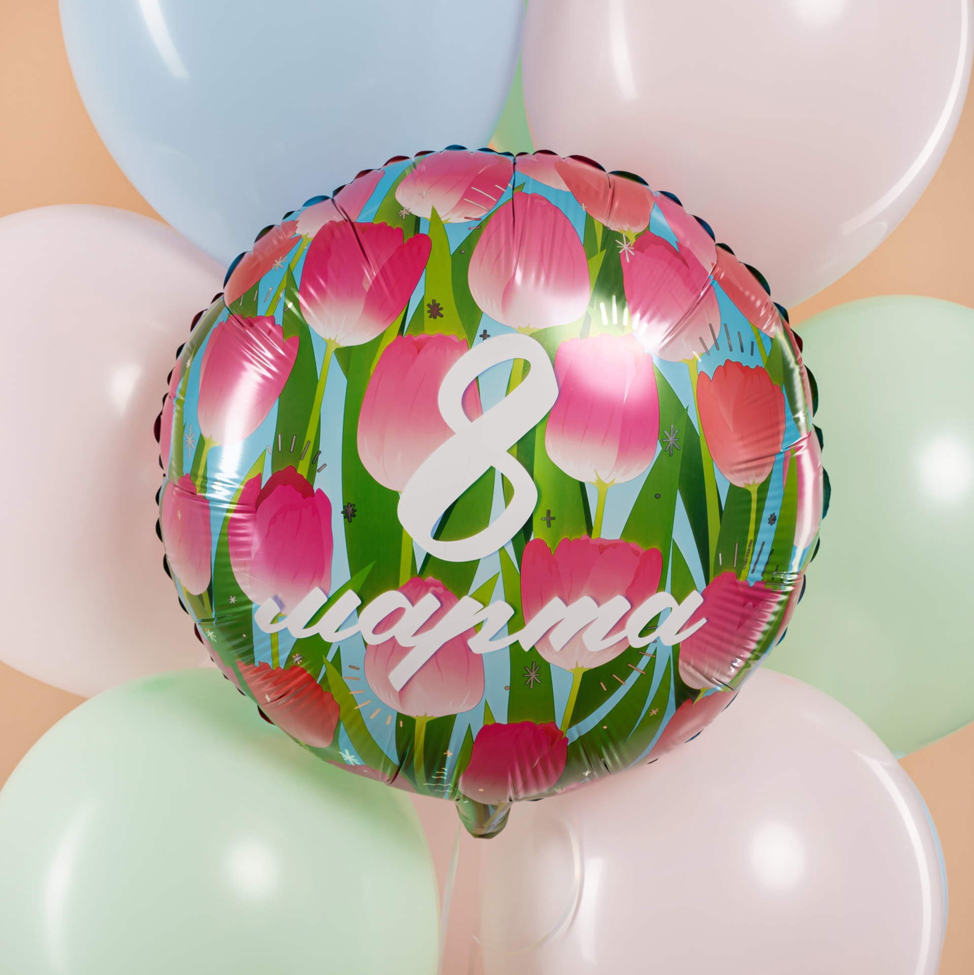 Шар (18''/46 см) Круг, 8 Марта (тюльпаны), 1 шт. в уп.