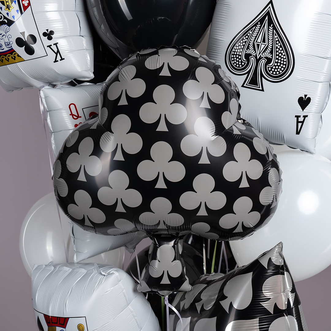 Шар (26''/66 см) Фигура, Покер, Карточная масть: Трефы, Черный, 1 шт. в уп.